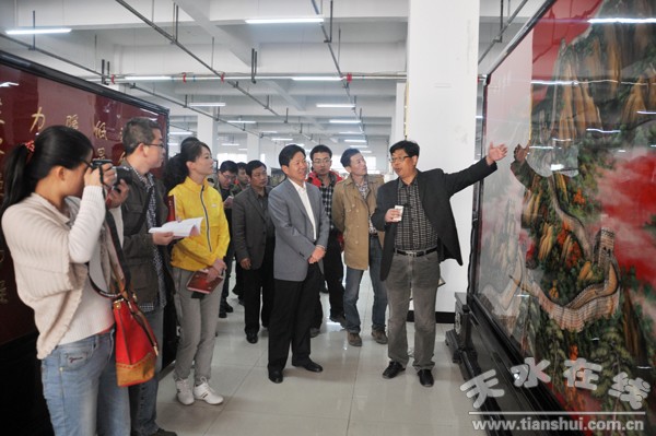 當(dāng)日,來(lái)自《人民日?qǐng)?bào)》、新華社、中央電視臺(tái)、中央人民廣播電臺(tái)、中國(guó)新聞社、《經(jīng)濟(jì)日?qǐng)?bào)》、香港《大公報(bào)》、香港《華人報(bào)》、香港《商報(bào)》、《澳門(mén)華人報(bào)》《甘肅日?qǐng)?bào)》、甘肅電視臺(tái)、《甘肅經(jīng)濟(jì)日?qǐng)?bào)》、甘肅人民廣播電臺(tái)、中國(guó)甘肅網(wǎng)等17家中央和省級(jí)新聞媒體的記者30余人,先后深入到飛天雕漆工藝家俱有限責(zé)任公司、西電長(zhǎng)城合金有限公司、甘肅電器科學(xué)研究院,豹子溝珍稀植物園,山水1號(hào)大橋施工現(xiàn)場(chǎng),太京鎮(zhèn)董家磨花牛蘋(píng)果園和二十鋪大櫻桃基地及席范村通村水泥路,山水嘉園、山水新城保障性住房小區(qū)、平峪溝道路綠化建設(shè)現(xiàn)場(chǎng),天水郡街道西十里社區(qū)和七里墩街道長(zhǎng)控社區(qū)、區(qū)公安分局,北宅子、賈家公館等地,就東十里工業(yè)示范區(qū)建設(shè)、秦州大櫻桃及果品產(chǎn)業(yè)、保障性住房建設(shè)、創(chuàng)新社會(huì)管理及社區(qū)服務(wù)、文化旅游和非物質(zhì)文化遺產(chǎn)傳承保護(hù)、“平安秦州”數(shù)字化管理工程進(jìn)行了現(xiàn)場(chǎng)采訪。