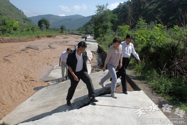 (秦州區(qū)外宣辦 劉可)7月22日,秦州區(qū)領導舒健、李子園、顧應存、王曉彤帶領工作組,分赴7.21強降雨受災區(qū)域查看災情,指導搶修救災工作。 區(qū)民政、農(nóng)業(yè)、水務、交通等相關(guān)部門負責同志一同前往查看。