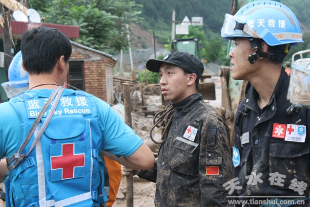 (秦州區(qū)外宣辦 劉可)在娘娘壩特大暴洪泥石流災(zāi)害搶險(xiǎn)救災(zāi)一線,奮戰(zhàn)著一支由民間公益人士組成的專業(yè)緊急救援隊(duì)伍,他們的名字叫“藍(lán)天”。7月28日,在接到搶險(xiǎn)救災(zāi)指揮部“進(jìn)入李子園向長(zhǎng)河一線深入探查情況”的任務(wù)指令后,藍(lán)天救援隊(duì)派出5名先遣隊(duì)員挺近李子園。
