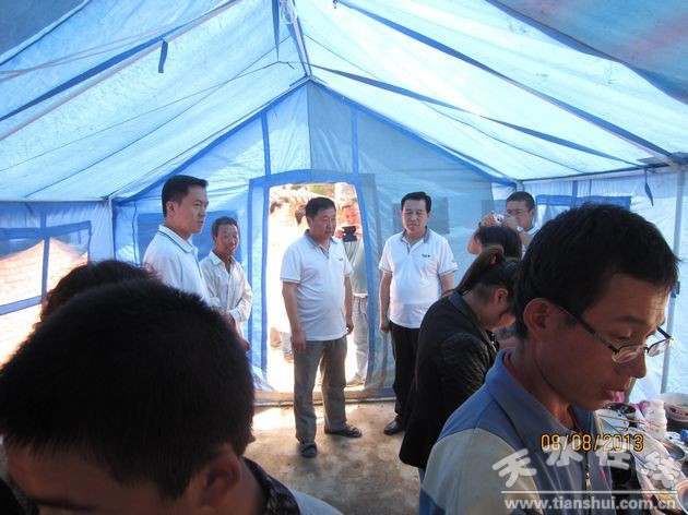 8月8日,天水市疾控中心李西林主任帶領(lǐng)市、區(qū)兩級衛(wèi)生防疫人員即刻前往秦州區(qū)中梁鄉(xiāng)災民安置點督查指導衛(wèi)生防疫工作。到達安置點后,李主任一行詳細調(diào)查了解了災民安置、生活環(huán)境、飲水飲食、垃圾處理、廁所及衛(wèi)生防疫和醫(yī)療工作等情況,對安置群眾進行了災后衛(wèi)生知識宣傳教育,下發(fā)、張貼健康教育宣傳畫冊5張,指導、培訓中梁鄉(xiāng)衛(wèi)生院及駐點衛(wèi)生防疫人員,為中梁鄉(xiāng)安置點開展衛(wèi)生防疫工作發(fā)放漂白粉100斤。要求安置點衛(wèi)生防疫組進一步加強癥候群和傳染病疫情監(jiān)測報告,規(guī)范安置點診療服務,落實消毒、殺蟲措施,加強飲水飲食安全,整飭環(huán)境衛(wèi)生,做好垃圾消毒處理及廁所管理工作。