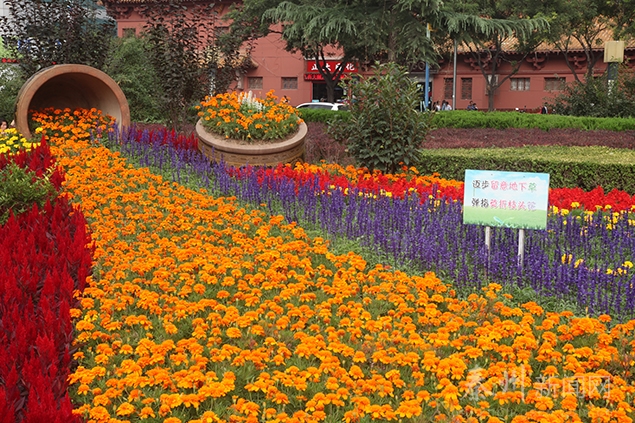 今年的節(jié)日鮮花擺放依照簡潔樸素的原則,以美化城市人居環(huán)境、提升城市品位、豐富生活色彩、濃郁節(jié)日氣氛為主旨。秦州園林部門以龍城廣場,中華東、西路步行街及民主路、建設路為重點,共擺放鮮花6.5萬盆。鮮花擺放延續(xù)了“節(jié)會”立體花缽造型美化,配以花箱、鐵樹等表現(xiàn)形式,周圍以萬壽菊、孔雀草、一串紅、雞冠花等多個草花品種,通過色帶色塊與立體花缽造型相搭配、平面美化與立體美化相結合的形式,形成點、線、面美化格局,為祖國的生日同祝福。