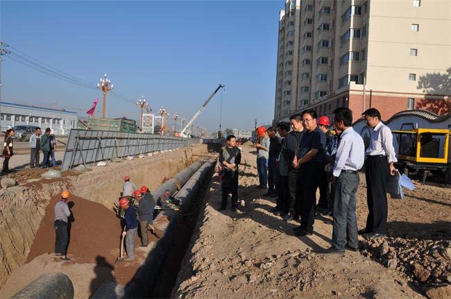 赤峪路給水管網(wǎng)改擴(kuò)建工程,經(jīng)過建設(shè)、監(jiān)理和施工各方的不懈努力,現(xiàn)已完成東段960米直徑1米球墨鑄鐵管道安裝,修建閥門井室9座,土方工程中挖方16425立方米,回填12297立方米。2013年10月2日完成710米管道的打壓試驗(yàn),標(biāo)志著該段管道安裝質(zhì)量合格并通過監(jiān)理部門的檢查驗(yàn)收。