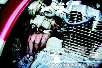 三十出頭的杜師傅修理摩托車(chē)已經(jīng)有8個(gè)年頭,如今杜師傅在秦州區(qū)西橋頭附近開(kāi)了一個(gè)專(zhuān)修摩托車(chē)的鋪?zhàn)?因?yàn)樗^(guò)硬的修車(chē)技術(shù)和他非常謙和的為人,生意一直不錯(cuò),每天都有顧客過(guò)來(lái)修車(chē)。由于常年都在外面修車(chē)加之每天都要和機(jī)油打交道,他的雙手沾滿了黑黑的機(jī)油,可是,他的臉上始終洋溢著樂(lè)觀向上的笑容。杜師傅告訴記者,雖然一天很忙碌,但是掙錢(qián)并不多,一個(gè)月啥都算上也就掙個(gè)三千多。