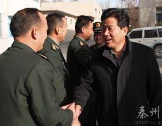 (秦州區(qū)外宣辦)1月24日,市委常委、秦州區(qū)委書記張明泰,區(qū)委常委、區(qū)人武部政委常亮,及區(qū)委辦、民政局等有關(guān)部門的負責人走訪慰問了駐地部隊,在春節(jié)前夕,將地方四大組織的擁軍之意,愛軍之情送進軍營,讓駐區(qū)官兵感受到第二故鄉(xiāng)的深情厚意。