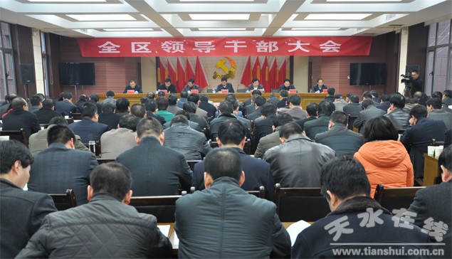 (秦州區(qū)外宣辦)3月5日,秦州區(qū)召開領導干部大會。會議的主要內容是對2013年度黨政正職政績進行考核和民主測評,并對新修訂的《黨政領導干部選拔任用工作條例》進行宣講學習。