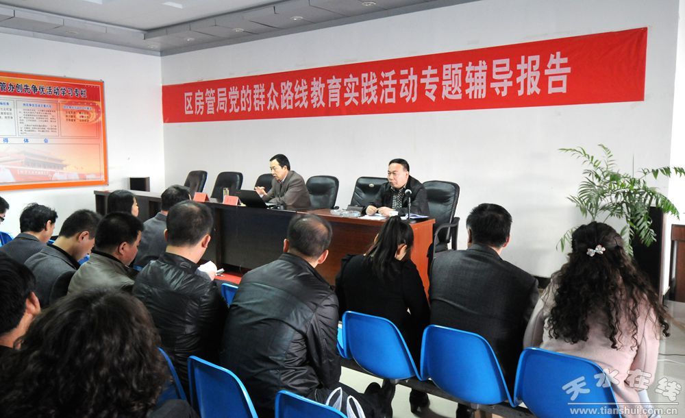 近日,秦州區(qū)房地產(chǎn)管理局舉辦黨的群眾路線教育實(shí)踐活動(dòng)專題輔導(dǎo)講座。天水市委黨校蒲曉光教授應(yīng)邀作輔導(dǎo)報(bào)告,秦州區(qū)房地產(chǎn)管理局黨總支副書記王海林同志主持,區(qū)房地產(chǎn)管理局全體黨員、干部職工參加了報(bào)告會(huì)。