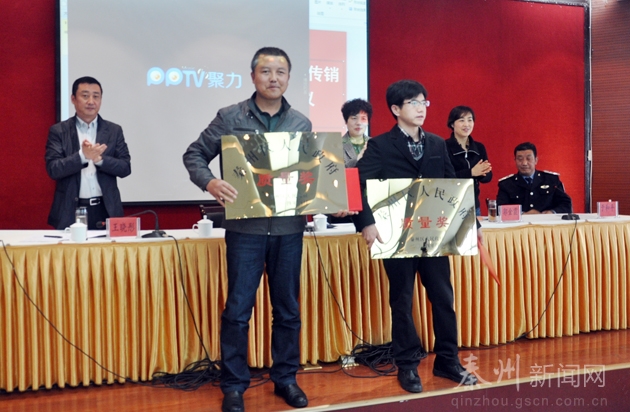 會議對獲得秦州區(qū)人民政府質量獎的企業(yè)進行了表彰獎勵。并簽訂2014年度打擊傳銷和質量振興工作目標責任書。