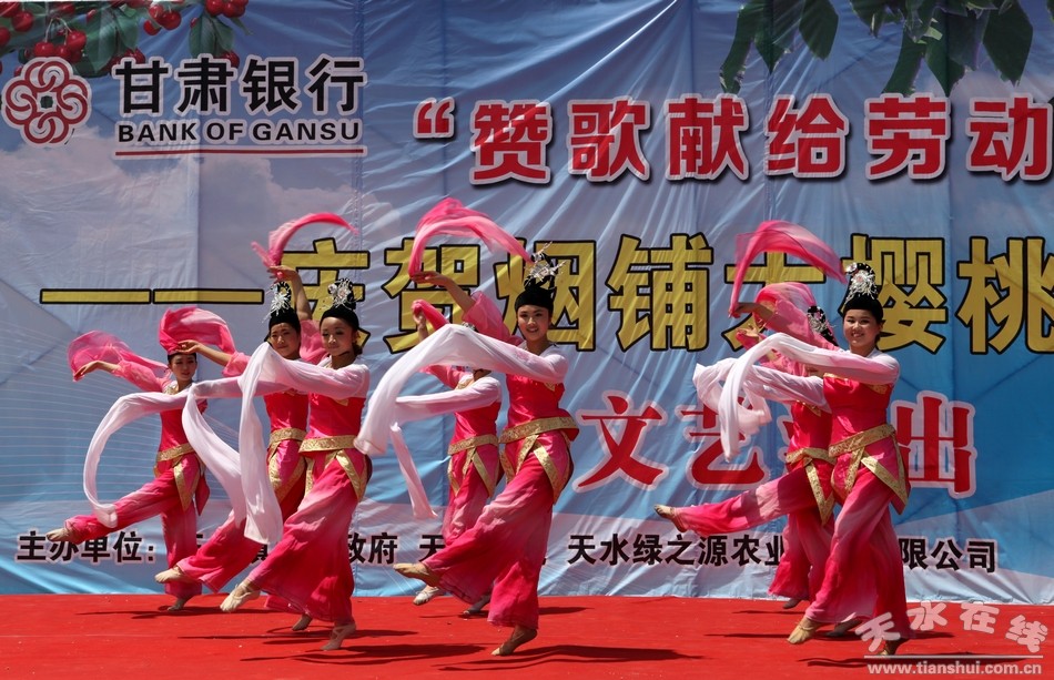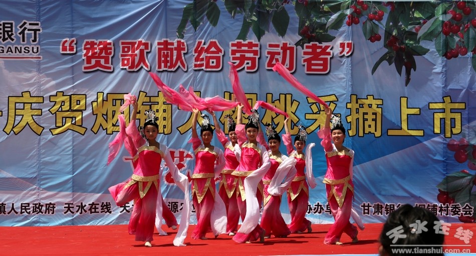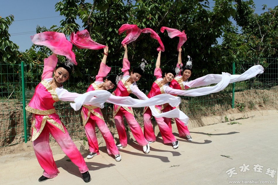 (天水市歌舞團的演員們在煙鋪櫻桃園翩翩起舞)