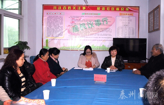 “今天召集大家來,是為了召開咱們社區(qū)的居民議事會議,下面我先把上次會議提出問題的解決情況給大家反饋一下……”10月30日下午,秦州區(qū)西關(guān)街道辦西站社區(qū)的居民議事廳里座無虛席,由西關(guān)街道辦領(lǐng)導、社區(qū)干部、居民代表、樓組長、退休黨員、失業(yè)人員、育齡婦女等參加的居民議事會在社區(qū)主任劉芳琴的主持下開始了。
