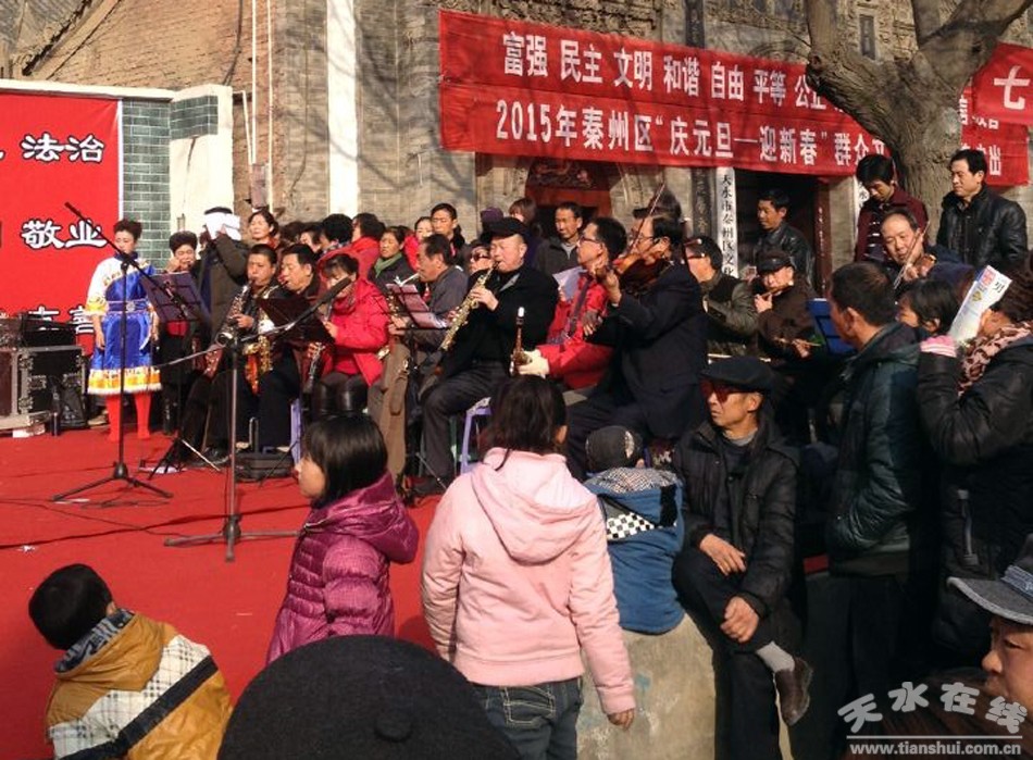 萬(wàn)馬奔騰辭舊歲,三陽(yáng)開(kāi)泰迎春來(lái)。2015年元旦期間,為豐富群眾文化生活,營(yíng)造節(jié)日喜慶氛圍,由區(qū)委宣傳部、秦州區(qū)文廣局主辦,秦州區(qū)文化館承辦的2015年秦州區(qū)“慶元旦——迎新春”群眾文化活動(dòng)文藝匯演在陜省會(huì)館門(mén)前拉開(kāi)帷幕。