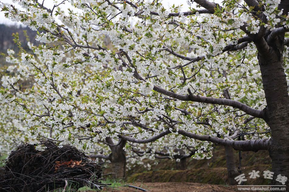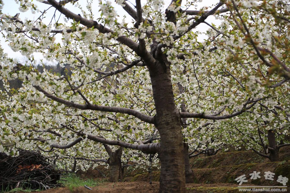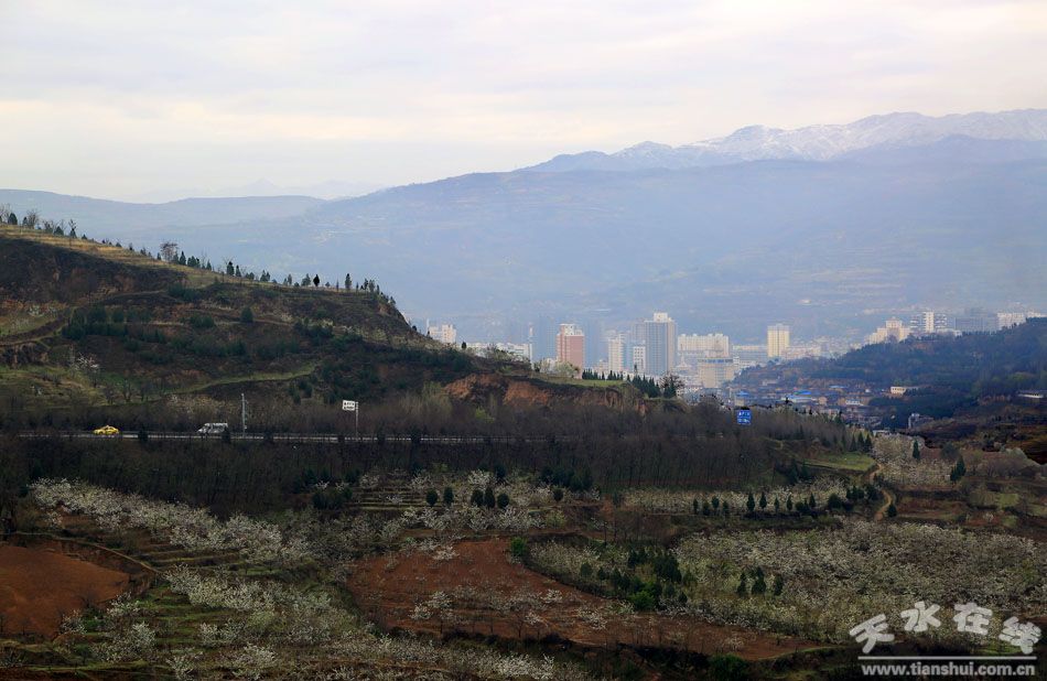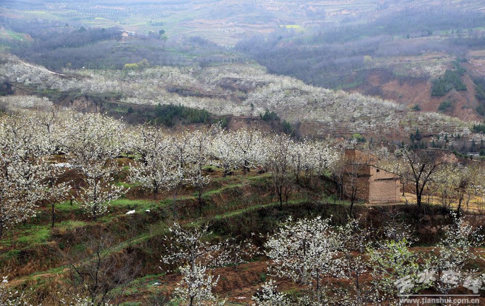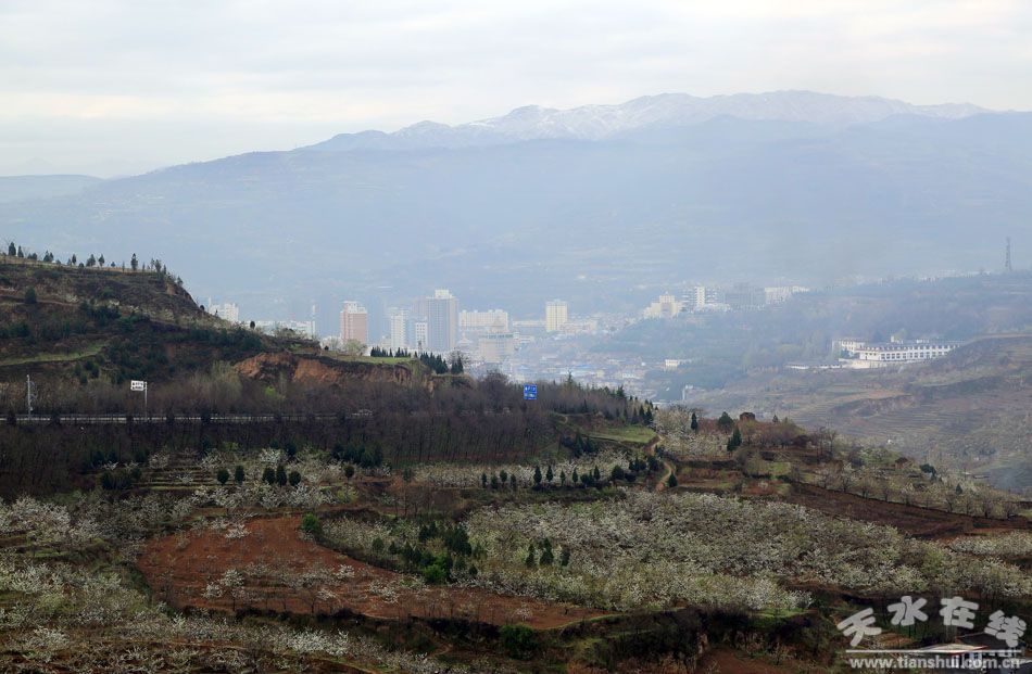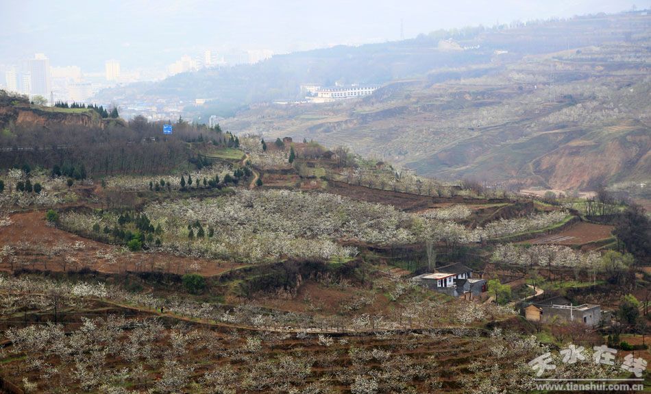 (煙鋪大櫻桃花開正盛 站在煙鋪櫻桃園即可遠(yuǎn)眺天水城)