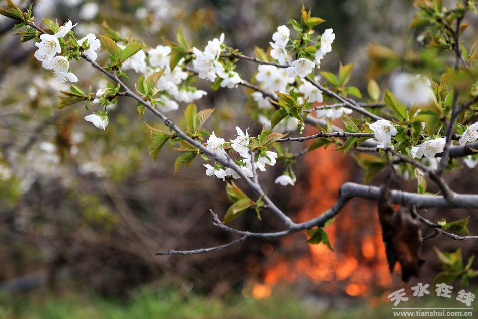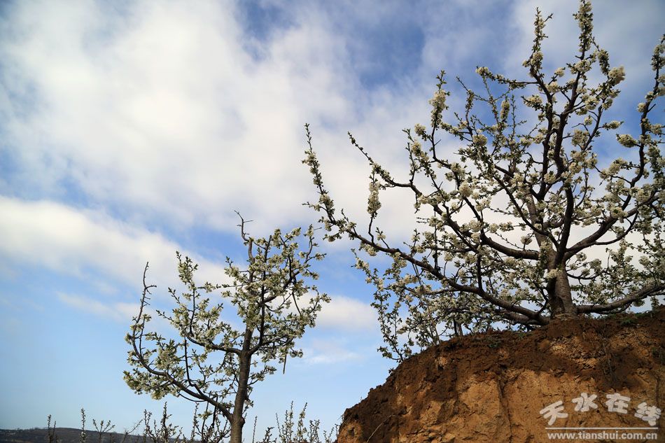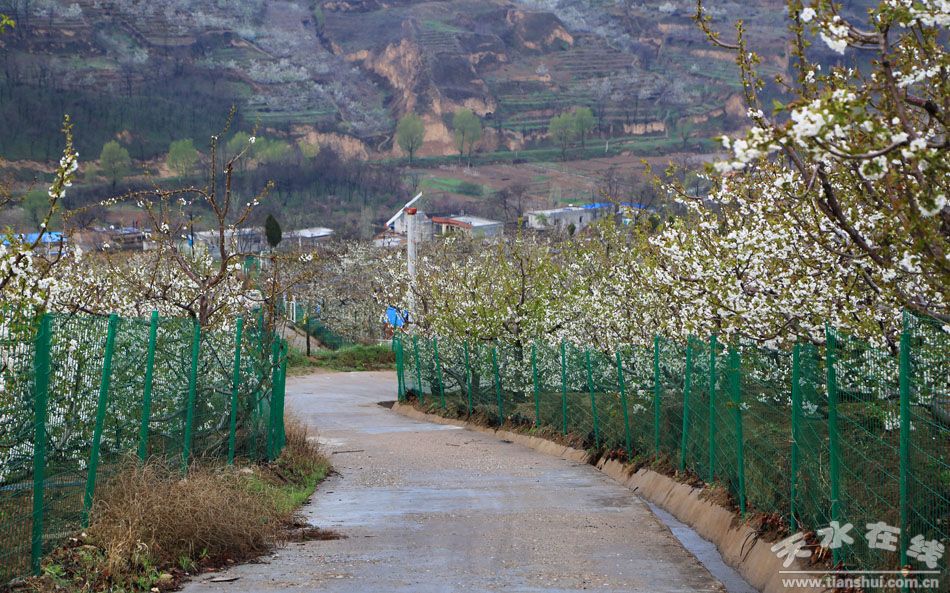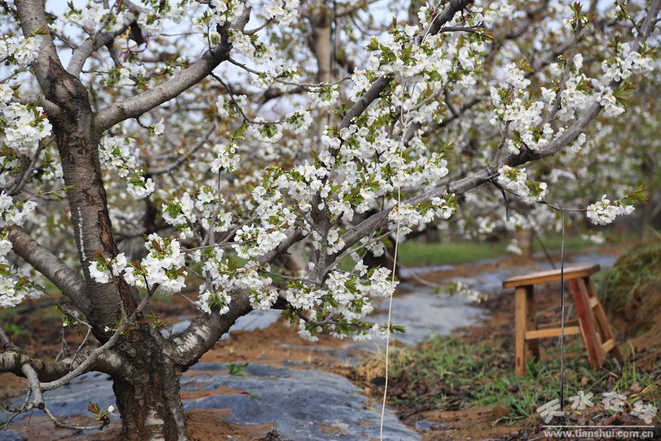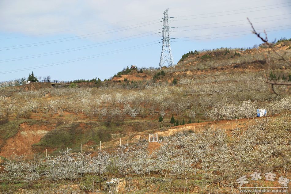 (煙鋪大櫻桃花開正盛 站在煙鋪櫻桃園即可遠(yuǎn)眺天水城)