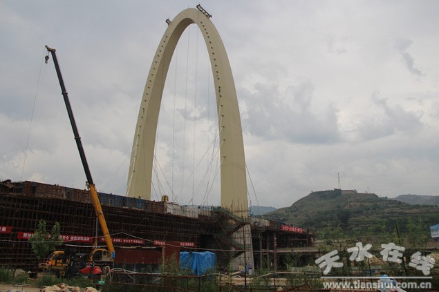 據(jù)了解,山水一號(hào)大橋位于秦州區(qū)“山水新城”保障性住房西側(cè)平峪溝以北300米處,橫跨藉河、天定高速,南起316國(guó)道,北與藉河河堤規(guī)劃路銜接。大橋分南引橋、主橋和北引橋三部分,該橋建設(shè)融城市景觀和交通為一體,是聯(lián)接藉河南、北兩個(gè)片區(qū)的外環(huán)快速通道樞紐工程,建成后將極大方便周?chē)罕姷某鲂校鼘?duì)提升城市形象,改善人居環(huán)境有重要意義。