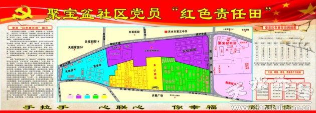 為了加強(qiáng)社區(qū)黨建工作,近年來(lái),聚寶盆社區(qū)創(chuàng)新方式方法,實(shí)行社區(qū)黨建網(wǎng)格化,以200至300戶居民為標(biāo)準(zhǔn),將社區(qū)劃分成若干網(wǎng)格,實(shí)現(xiàn)黨員由分散管理到集中管理的轉(zhuǎn)變。建成三塊“紅色責(zé)任田”,并同步組建了“責(zé)任田”黨支部;確立了9個(gè)黨員樓棟長(zhǎng)、60戶黨員中心戶,實(shí)現(xiàn)了黨總支建在社區(qū)、黨支部建在網(wǎng)格、黨小組建在樓棟巷道、黨員中心戶建在單元院落的黨建工作網(wǎng)絡(luò),形成了以社區(qū)黨總支為核心的區(qū)域性黨建工作新格局,實(shí)現(xiàn)了社區(qū)工作管理無(wú)死角、服務(wù)零距離、工作全覆蓋。