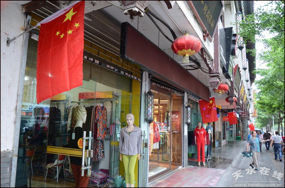 天水在線攝影報道:秦州區(qū)“國旗一條街”紅旗飄飄(圖)