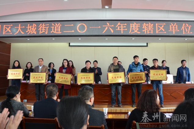 會(huì)議中,大城和北關(guān)派出所所長分別作了2016年轄區(qū)治安形勢(shì)分析報(bào)告;隨后,街道辦事處領(lǐng)導(dǎo)宣讀了《關(guān)于表彰命名中國郵政儲(chǔ)蓄銀行天水市分行、甘肅銀行為文明單位的決定》和《關(guān)于表彰2015年度綜合工作先進(jìn)社區(qū)的決定》;并對(duì)在轄區(qū)共駐共建、環(huán)境綜合整治、安全生產(chǎn)、計(jì)劃生育等5項(xiàng)工作中成績突出、作出積極貢獻(xiàn)的40家單位進(jìn)行了表彰,授予了獎(jiǎng)牌;對(duì)在2015年工作中涌現(xiàn)出的一批作風(fēng)優(yōu)良、愛崗敬業(yè)、敢于擔(dān)責(zé)、業(yè)績突出的優(yōu)秀干部分別授予了“先進(jìn)個(gè)人”、“崗位標(biāo)兵”、“優(yōu)秀網(wǎng)格員”等榮譽(yù)稱號(hào),頒發(fā)了榮譽(yù)證書。會(huì)后,轄區(qū)單位分別與街道各站所辦簽訂了2016年相關(guān)業(yè)務(wù)目標(biāo)管理責(zé)任書。
