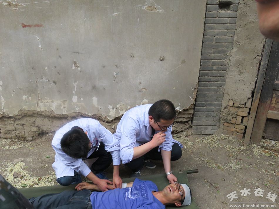 講座結(jié)束后,防震演練活動(dòng)正式開(kāi)始,隨著信號(hào)員發(fā)出三聲短警報(bào)聲,大家迅速抱頭,就近躲避。1分鐘后現(xiàn)場(chǎng)總指揮下達(dá)疏散命令,在信號(hào)員發(fā)出第二次一聲長(zhǎng)警報(bào)信號(hào)聲時(shí),全體人員按照撤離秩序,以最快速度有序到達(dá)緊急避難場(chǎng)所,各小組負(fù)責(zé)人清點(diǎn)人數(shù)并向總指揮報(bào)告撤離情況,又迅速組織人員開(kāi)展自救互救工作。天水仁和醫(yī)院的2名醫(yī)護(hù)人員現(xiàn)場(chǎng)演習(xí)講解包扎外傷、骨折的救治辦法。東關(guān)街道黨工委書(shū)記任保平對(duì)本次演練活動(dòng)情況進(jìn)行了總結(jié),他指出本次演練做到了安全、迅速、有序,達(dá)到了演練的目的和預(yù)定效果。