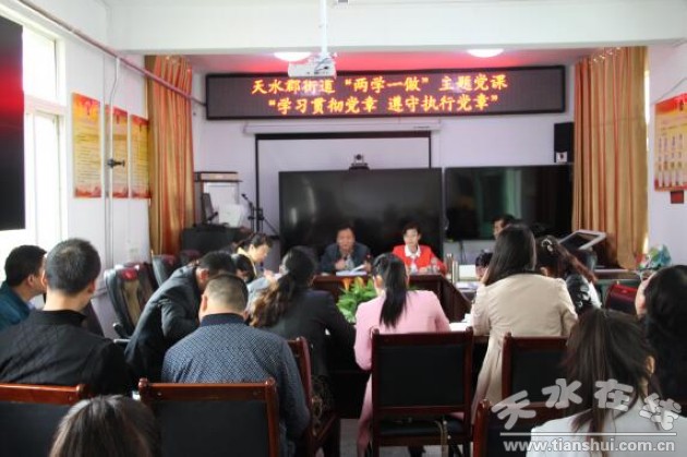 2016年5月27日上午,天水郡街道召開黨工委中心組擴大學(xué)習(xí)會。街道、社區(qū)全體黨員、干部共85人參加了會議。會議由街道黨工委書記成軍同志主持并做了標(biāo)題為“學(xué)習(xí)貫徹黨章,遵守執(zhí)行黨章”的專題黨課。