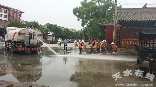 “節(jié)會(huì)”期間,面對(duì)高溫酷暑天氣,秦州區(qū)廣大環(huán)衛(wèi)干部職工不辱使命,充分發(fā)揚(yáng)“不怕臟苦累”的環(huán)衛(wèi)精神,戰(zhàn)高溫、斗酷暑,揮汗如雨,盡職盡責(zé),晝夜連續(xù)作戰(zhàn),以飽滿的工作熱情、昂揚(yáng)的工作斗志和扎實(shí)高效的工作作風(fēng),全天候開(kāi)展街面清洗、巡回保潔、垃圾收集清運(yùn)、吸塵除塵、噴淋抑塵等環(huán)衛(wèi)作業(yè),全力保障“節(jié)會(huì)”期間城市環(huán)境衛(wèi)生的持續(xù)干凈整潔。