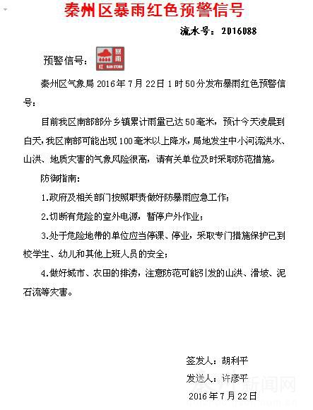 ·秦州區(qū)暴雨紅色預警信號(圖)