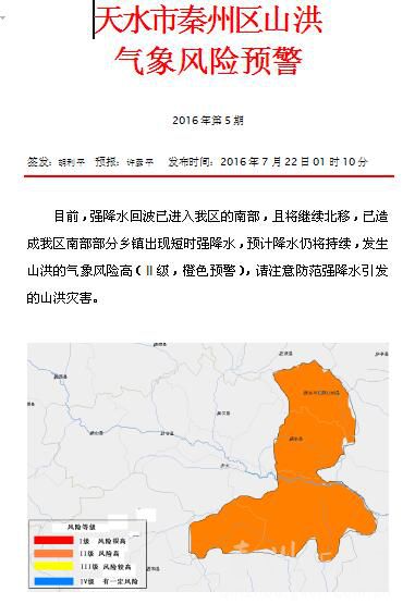 ·天水市7月22日00時發(fā)布地質(zhì)災害Ⅱ級氣象風險預警