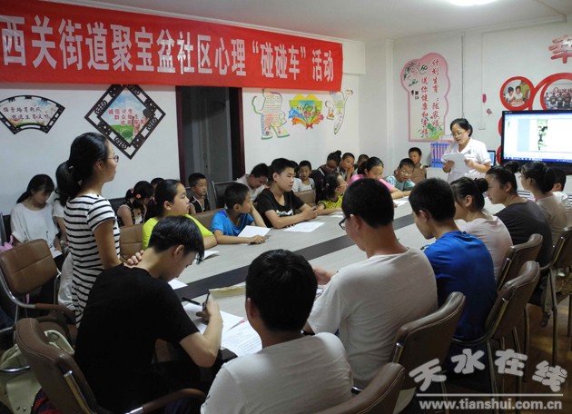 三、舉辦“心理碰碰車”活動。8月19日下午,邀請社區(qū)衛(wèi)生服務(wù)中心醫(yī)生在幸福寓所為轄區(qū)青少年開展了《中小學生心理健康知識》講座。講座生動有趣,學生聽得津津有味,現(xiàn)場氣氛異常熱烈。