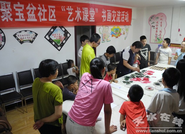 五、舉辦“藝術(shù)課堂”書畫培訓(xùn)活動。邀請中國美術(shù)家協(xié)會會員,天水市美術(shù)家協(xié)會理事,秦州區(qū)美術(shù)家協(xié)會副主席馮泊為轄區(qū)熱愛書畫的中小學生在社區(qū)辛福寓所開展了書畫培訓(xùn),吸引轄區(qū)眾多小朋友參加,進一步豐富了他們的暑期生活。