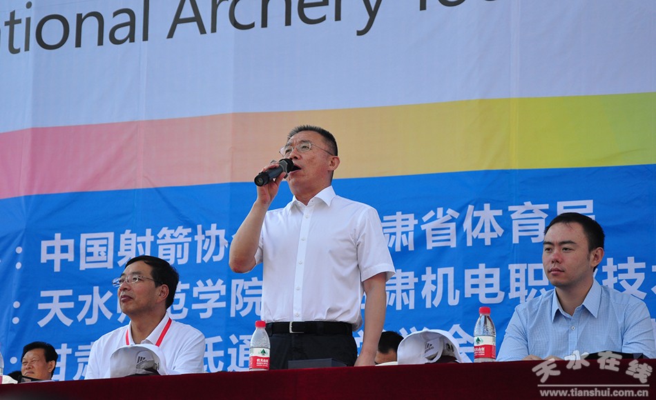 中共天水市委書記王銳宣布中國(guó)·天水秦州第二屆“李廣杯”國(guó)際傳統(tǒng)射箭錦標(biāo)賽開幕。國(guó)家體育總局射擊射箭運(yùn)動(dòng)管理中心射箭部主任李欣平,甘肅省體育局副局長(zhǎng)王克平,天水市人大常委會(huì)主任柴金祥,中共天水市委常委、市委秘書長(zhǎng)蔣曉強(qiáng),中共天水市委常委、秦州區(qū)委書記雷鳴,天水市人大常委會(huì)副主任蕭菡,天水市副市長(zhǎng)張建杰,天水市政協(xié)副主席白曉玲、劉永年,天水師范學(xué)院院長(zhǎng)蔡文浩,甘肅機(jī)電職業(yè)技術(shù)學(xué)院黨委書記李宗義出席開幕式。