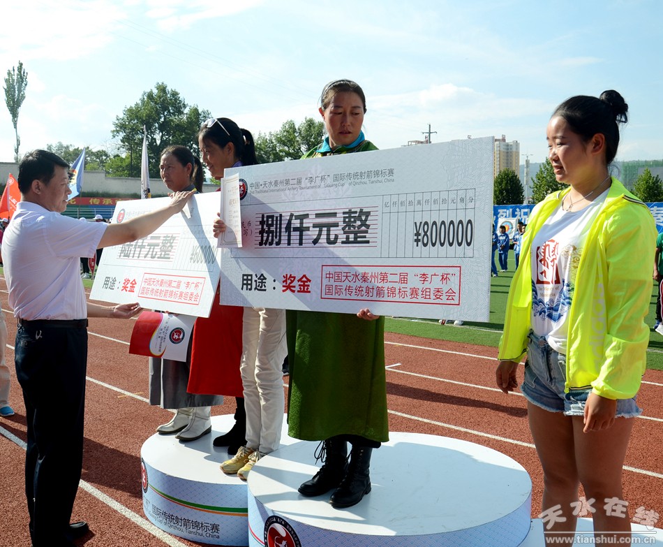 ▲頒發(fā)成年現(xiàn)代傳統(tǒng)弓組女子個人排名賽獎
