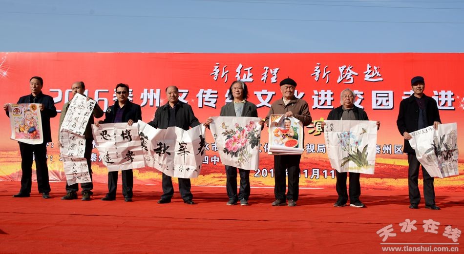 曹亞玲指出,秦州作為中華民族和中華文明的發(fā)祥地之一,歷史文化底蘊(yùn)深厚,文化遺產(chǎn)豐富多彩。近年來,區(qū)委、區(qū)政府搶抓華夏文明傳承創(chuàng)新區(qū)建設(shè)機(jī)遇,堅持走文化旅游富區(qū)戰(zhàn)略,突出 “羲皇故里”、“秦州古韻”、“隴上江南”三大品牌,緊緊圍繞“以始祖文化為核心,打造全球華人尋根祭祖圣地;依托國家歷史文化名城,打造絲綢之路經(jīng)濟(jì)帶文化體驗旅游目的地;依托中國優(yōu)秀旅游城市,打造西北乃至全國知名的生態(tài)休閑旅游度假勝地”的目標(biāo),不斷加大文化資源保護(hù)開發(fā)利用,加強(qiáng)文化產(chǎn)業(yè)項目扶持發(fā)展,全區(qū)文化品牌優(yōu)勢越加明顯,文化發(fā)展呈現(xiàn)出良好的勢頭,活動現(xiàn)場天水市知名的書畫家還為廣大師生現(xiàn)場贈送了書畫作品。