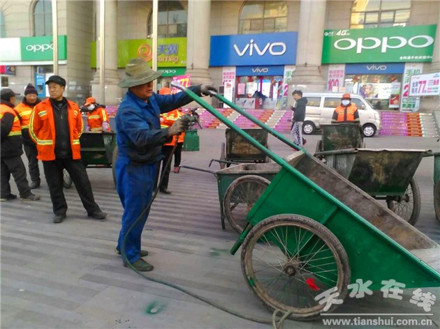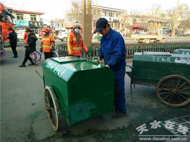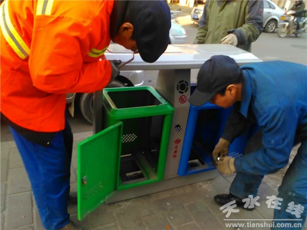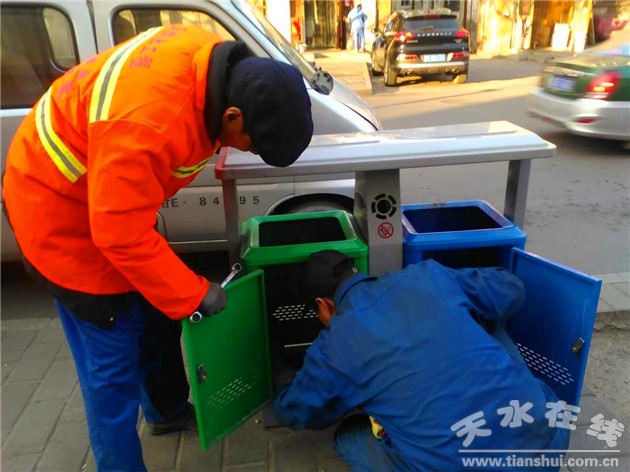 為迎接2017年新年的到來,進(jìn)一步提升美化城市形象,給廣大市民營造靚麗溫馨的節(jié)日氛圍,進(jìn)入十二月份以來,秦州區(qū)城鄉(xiāng)環(huán)衛(wèi)局積極部署、搶抓時(shí)間,大力開展果皮箱、手推車、垃圾等環(huán)衛(wèi)設(shè)施的維修更換、油飾、噴繪標(biāo)語等工作。