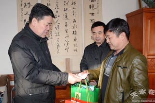 從1月19日開始,秦州區(qū)紅十字會專職副會長方曉崗帶領(lǐng)區(qū)紅十字會慰問團,集中三天時間,深入關(guān)子鎮(zhèn)敬老院,皂郊鎮(zhèn)楊灣村、周集寨村,娘娘壩鎮(zhèn)南峪村、汪川鎮(zhèn)、太京鎮(zhèn)等五個鄉(xiāng)鎮(zhèn)的20多個村,先后慰問100戶困難家庭、孤寡老人和五保戶,發(fā)放大米、油等價值1.31萬元的慰問品,并為他們送去新春的祝福。