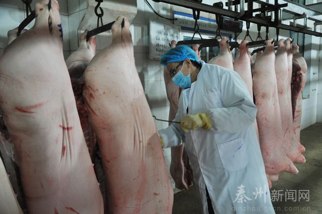 肉的質(zhì)量好不好,是廣大群眾最關(guān)心的問題。為了讓大家吃的放心、吃的安全,區(qū)動物衛(wèi)生監(jiān)督所的工作人員在屠宰期間,也是一直堅守在工作崗位上,按照檢驗標(biāo)準(zhǔn)認(rèn)真檢查監(jiān)督。