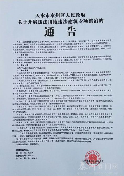 會議通報了《秦州區(qū)違法用地違法建筑管制目標責任書》落實情況,宣讀了《秦州區(qū)違法用地違法建筑專項整治工作實施方案》。