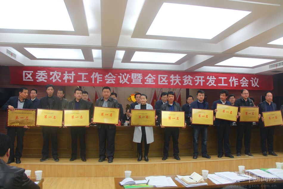 會議表彰了2016年度全區(qū)農(nóng)業(yè)農(nóng)村工作目標管理單項考核先進鄉(xiāng)鎮(zhèn)和2016年度精準扶貧精準脫貧先進鄉(xiāng)鎮(zhèn),對命名第八批農(nóng)業(yè)產(chǎn)業(yè)化重點龍頭企業(yè)、第七批農(nóng)民專業(yè)合作社示范社、第二批示范性家庭農(nóng)場進行授牌;與各鄉(xiāng)鎮(zhèn)簽訂《秦州區(qū)2017年農(nóng)業(yè)農(nóng)村經(jīng)濟工作目標管理責(zé)任書》。