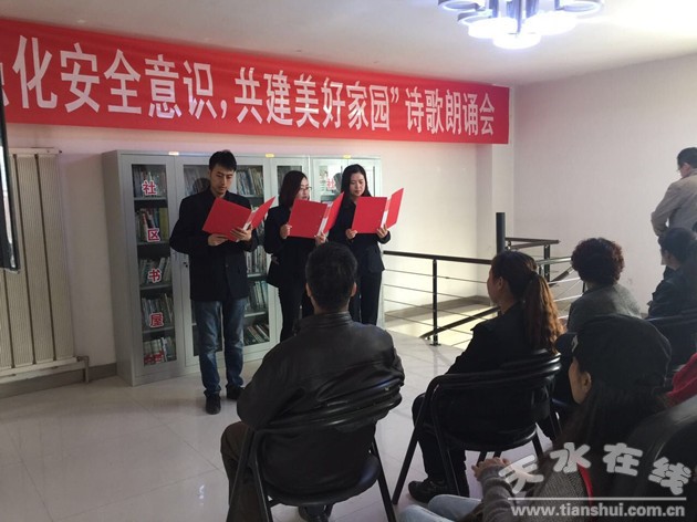 該次朗誦會在朗誦《我的祖國》中拉開了帷幕,同時朗誦了《我愛這徒弟》、《擁抱春天》、《你是人間四月天》等經(jīng)典詩歌。朗誦內(nèi)容豐富多彩,朗誦形式多姿多樣,歌頌美好生活,歌頌祖國母親。朗誦者有居民群眾,也有社區(qū)干部,深情并茂、抑揚頓挫,不時迎來大家的陣陣掌聲,整個現(xiàn)場縈繞著濃厚的文化氣息。朗誦結(jié)束以后,工作人員還向參加活動的居民群眾發(fā)放了以《國家安全法》、《反間諜法》、《反恐怖主義法》等為主要內(nèi)容的宣傳單頁,并對社區(qū)安全工作作了宣傳。