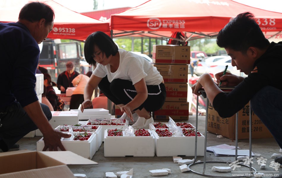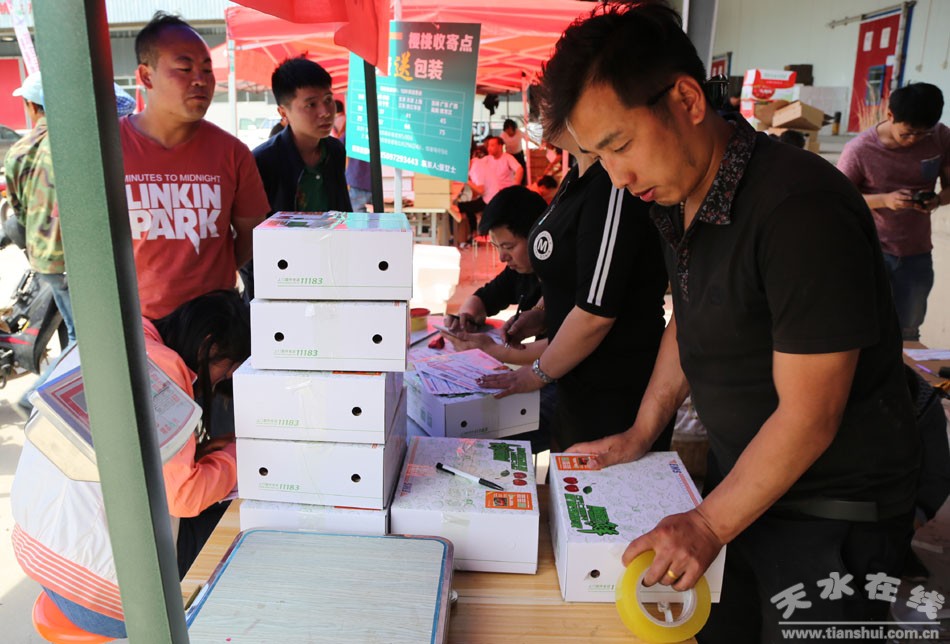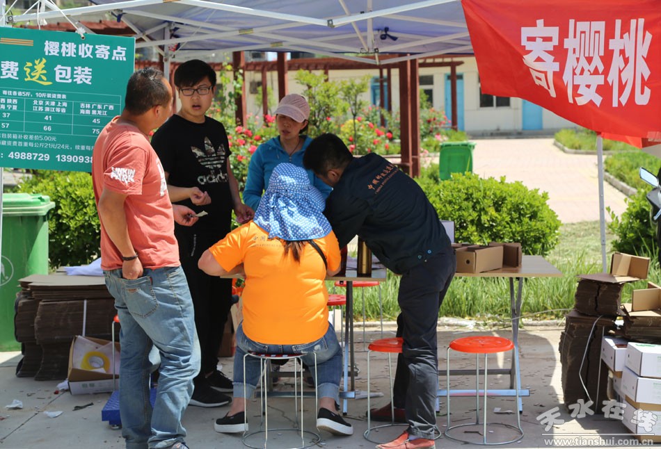 (設(shè)在煙鋪櫻桃市場的快遞收寄點(diǎn) 天水在線攝于5月26日上午)