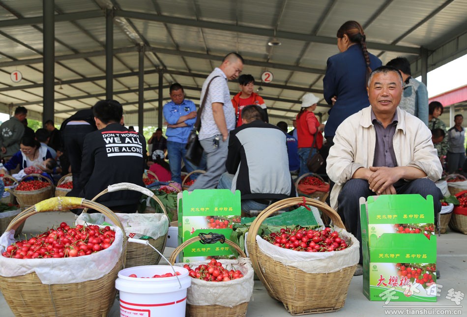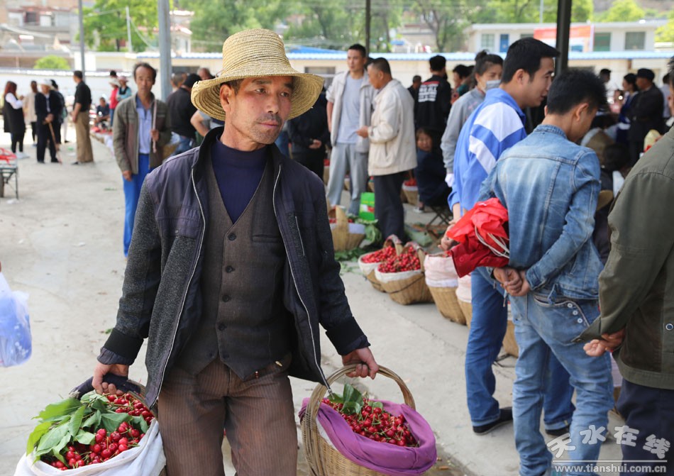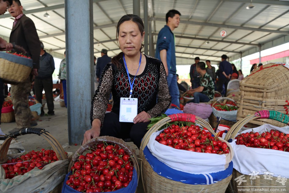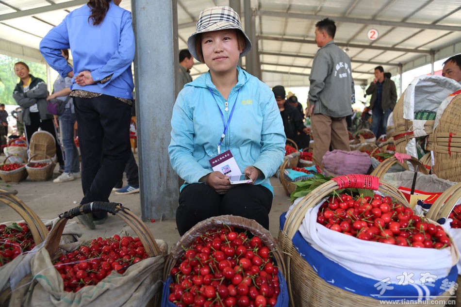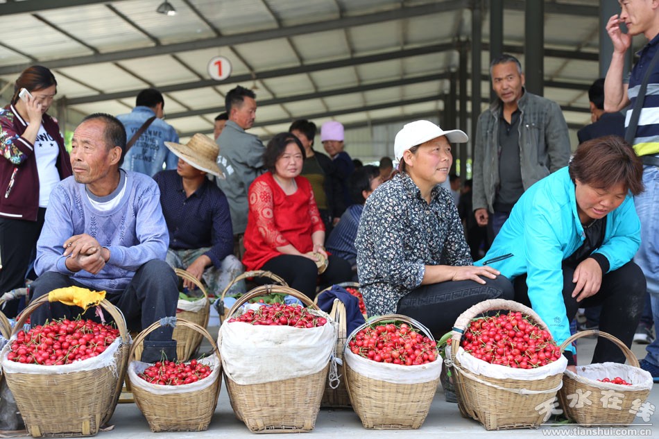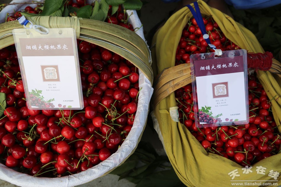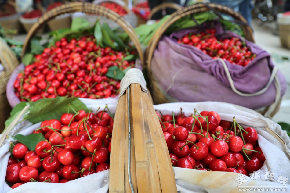 (煙鋪大櫻桃已經(jīng)全面上市 天水在線攝于5月26日上午)