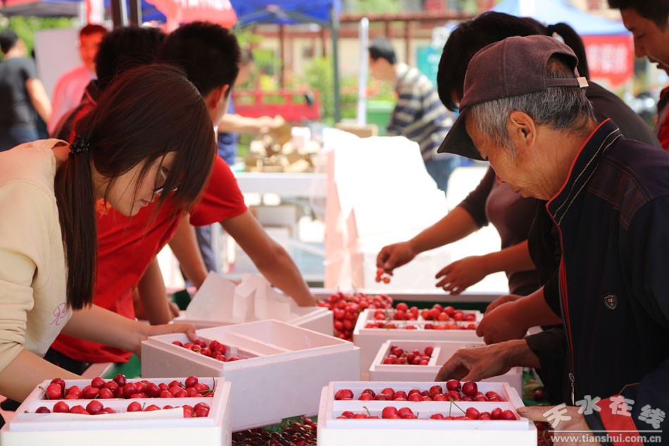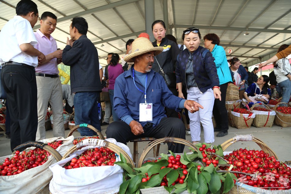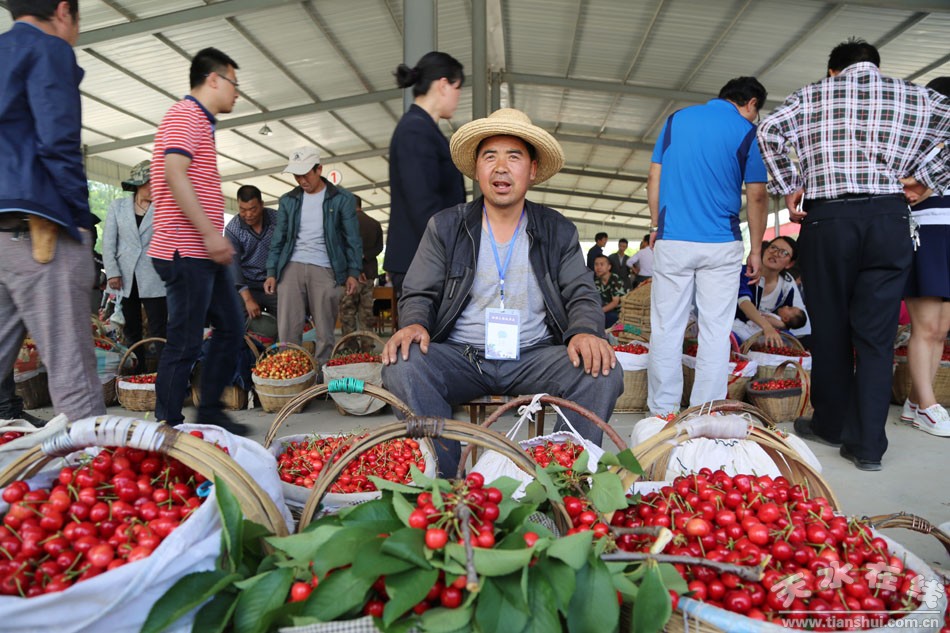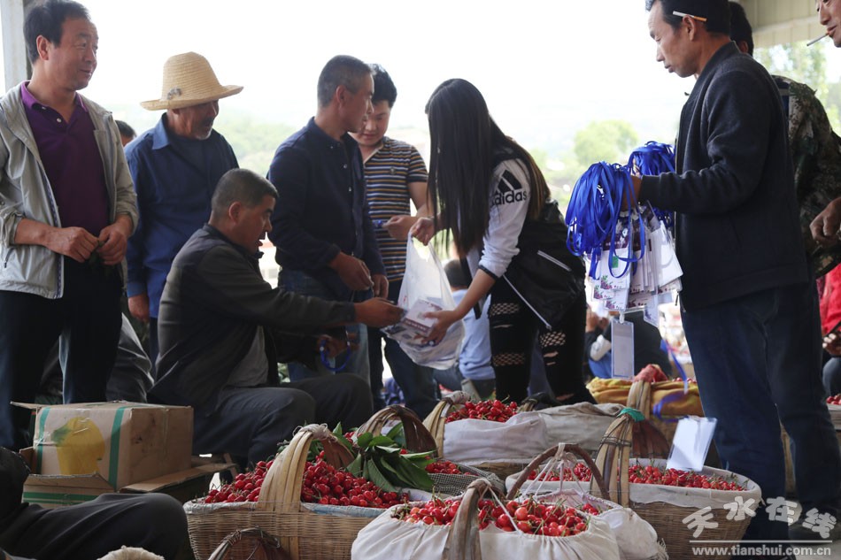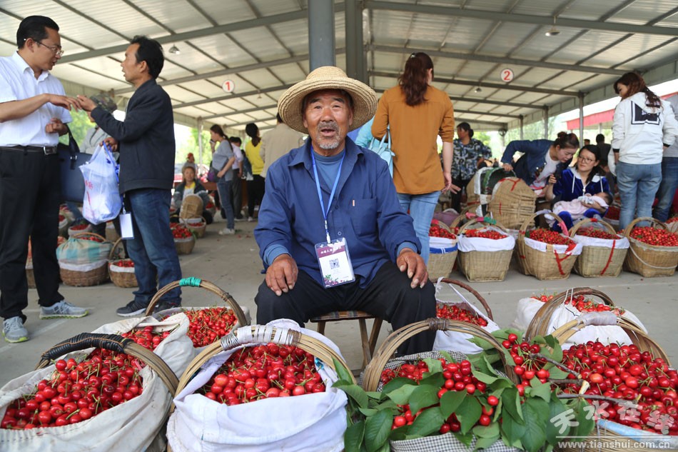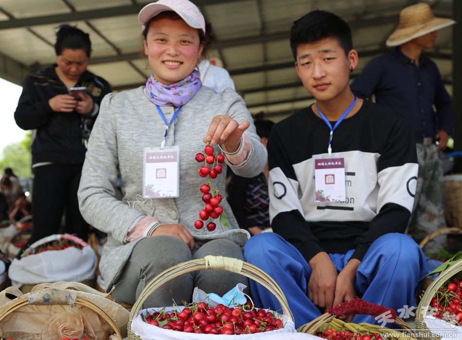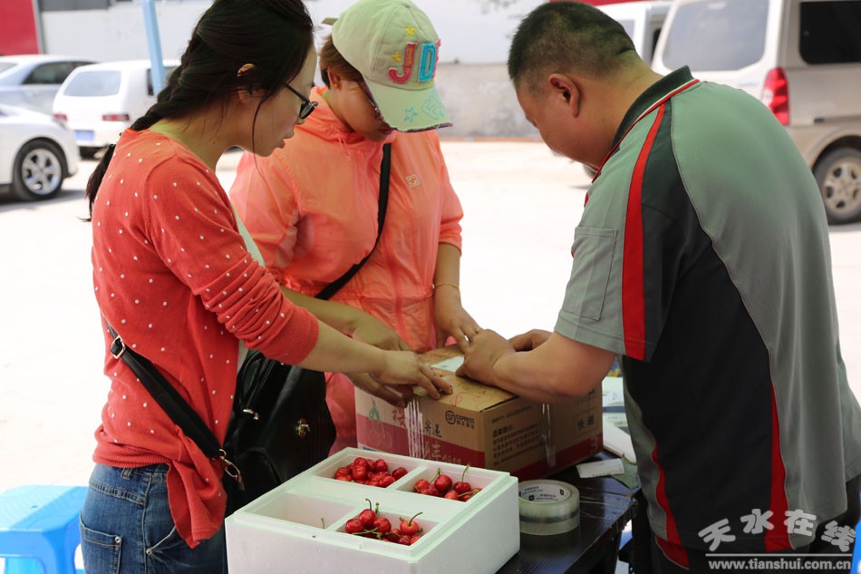 (煙鋪大櫻桃已經(jīng)全面上市 天水在線攝于5月26日上午)