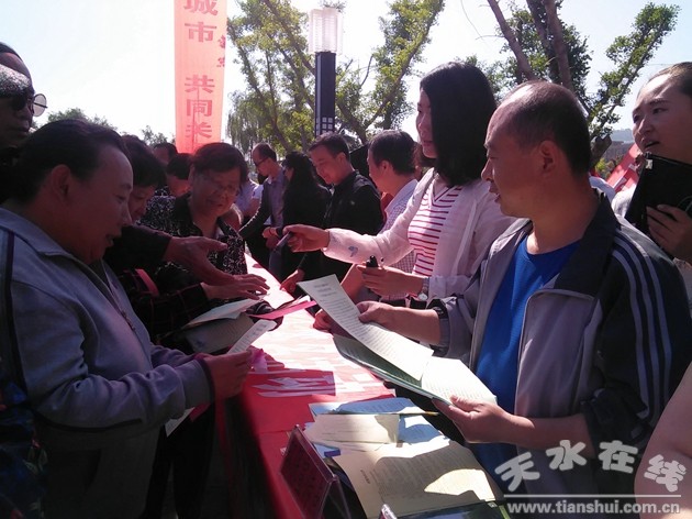 活動現(xiàn)場,工作人員在現(xiàn)場發(fā)放環(huán)保宣傳手冊和宣傳公益廣告,向居民發(fā)放了《天水郡街道環(huán)境保護(hù)網(wǎng)格化宣傳手冊》、《天水郡街道環(huán)境保護(hù)和大氣污染防治知識宣傳頁》、《人人關(guān)心環(huán)境質(zhì)量,人人參與環(huán)境保護(hù)》低碳小知識和《新環(huán)保法》等宣傳多種宣傳資料300余份,現(xiàn)場解答群眾如何在日常生活中注重低碳出行、綠色消費、垃圾分類常識等。