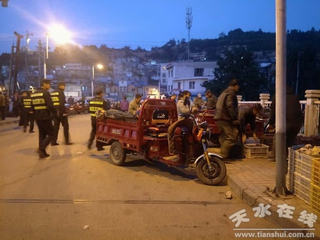 9月18日開始,秦州區(qū)執(zhí)法局聯(lián)合交警部門,從早上6點(diǎn)開始,疏導(dǎo)進(jìn)出車輛,規(guī)范占道攤點(diǎn),綜合治理羅峪路的“堵、亂、差”。根據(jù)水果批發(fā)商販擺攤早、購物群體年齡偏大,商販大多是自種自銷的農(nóng)戶等特點(diǎn),實(shí)行延時執(zhí)法,上崗時間提前到了早6時,堅持宣傳教育和嚴(yán)格執(zhí)法相結(jié)合的管理方式,采取廣泛動員,宣傳造勢。通過沿街循環(huán)播放城管法律法規(guī)、現(xiàn)場發(fā)放宣傳資料等方式,不斷增強(qiáng)水果商販的規(guī)范經(jīng)營意識,營造一個群眾知曉、社會支持的輿論氛圍。并且耐心勸導(dǎo),規(guī)范管理。在放置嚴(yán)禁擺攤設(shè)點(diǎn)標(biāo)識牌的基礎(chǔ)上、逐戶面對面,耐心講解,教育勸導(dǎo)商販在人行道有序規(guī)范經(jīng)營,還路于民,對個別打游擊、反彈性較大的占道攤點(diǎn)加大查處力度,嚴(yán)防死守,重點(diǎn)治理,對屢教不改、不服從管理的商販,暫扣其經(jīng)營工具或物品,依法實(shí)施行政處罰。