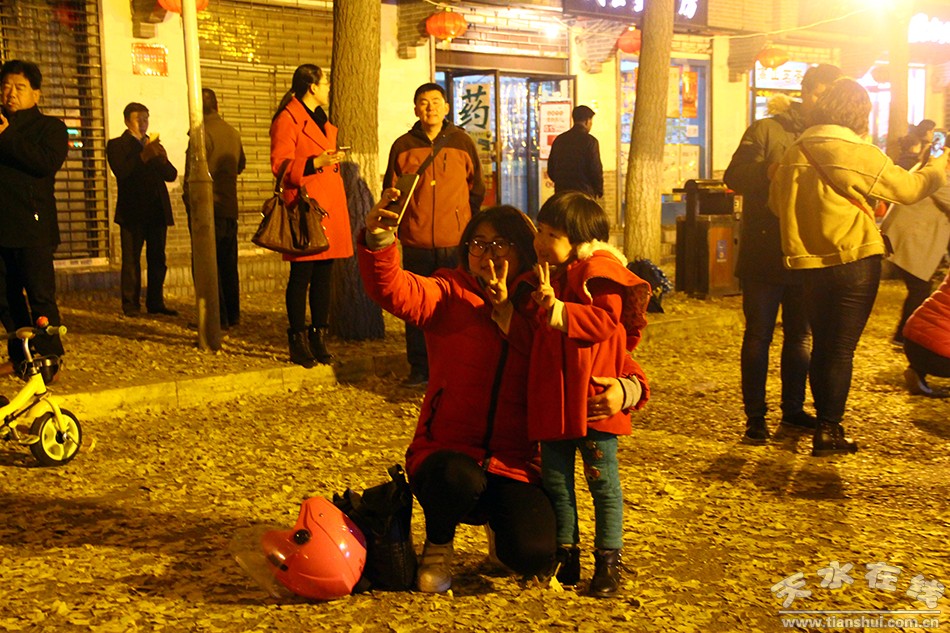 夜空下的游人為金色而癡醉。記者在現(xiàn)場看到,游人們在道路上紛紛流連駐足,欣賞路邊銀杏景觀。他們其樂融融,歡聲笑語,流連忘返,F(xiàn)場市民說,秦州古城的夜晚似乎很長時間都沒有這么熱鬧過,每個人的臉上洋溢著幸福的笑容,夜晚的寂靜已被這場全民“狂歡”打破,笑聲融入秦州夜空。已是深夜,人們?nèi)晕从须x去之意。