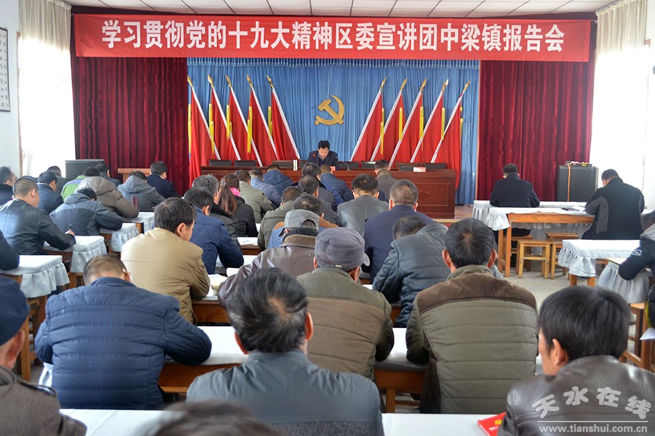 。ㄇ刂輩^(qū)外宣辦 楊晨)近日,秦州區(qū)政協(xié)主席、學(xué)習(xí)貫徹黨的十九大精神區(qū)委宣講團(tuán)成員宋丕林深入中梁鎮(zhèn)宣講黨的十九大精神。