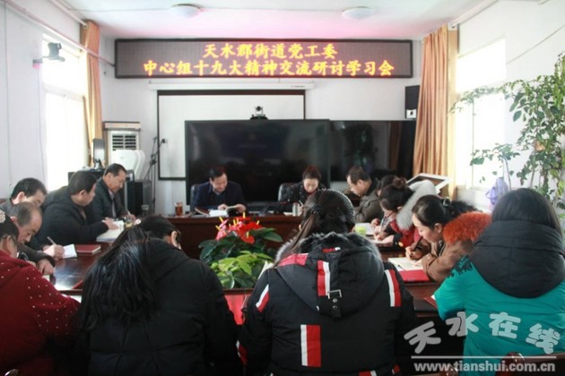 2月6日下午,天水郡街道召開黨工委中心組十九大交流研討學(xué)習(xí)會(huì)。進(jìn)一步深入學(xué)習(xí)習(xí)近平新時(shí)代中國(guó)特色社會(huì)主義思想和黨的十九大精神。交流學(xué)習(xí)體會(huì),統(tǒng)一思想認(rèn)識(shí),為開好街道黨工委班子民主生活會(huì)打牢思想基礎(chǔ)。