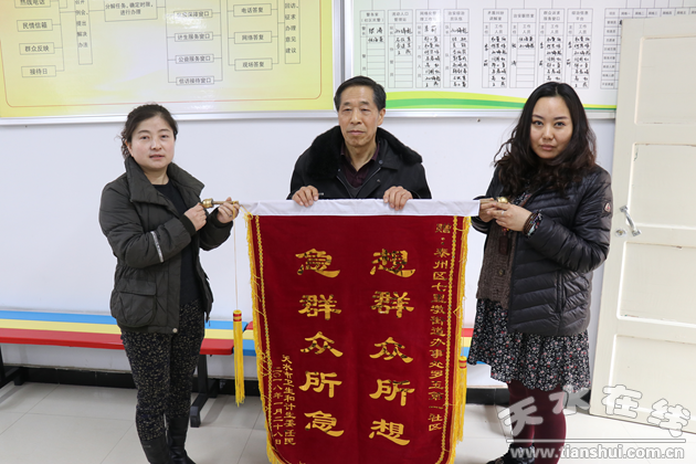 慰問(wèn)組慰問(wèn)過(guò)程中,恰逢羅玉一社區(qū)居民任來(lái)祥給社區(qū)送來(lái)錦旗,他感動(dòng)地說(shuō)道:“感謝你們,感謝黨和政府的關(guān)心,讓我們?cè)谧罾щy的時(shí)候感受了溫暖,對(duì)新的一年充滿了希望!逼呃锒战值琅袆(dòng)把新春佳節(jié)的問(wèn)候和祝福送到了轄區(qū)居民的心坎上,讓這個(gè)冬天“暖起來(lái)”,暖到七里墩轄區(qū)的每一個(gè)角落。