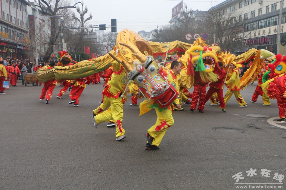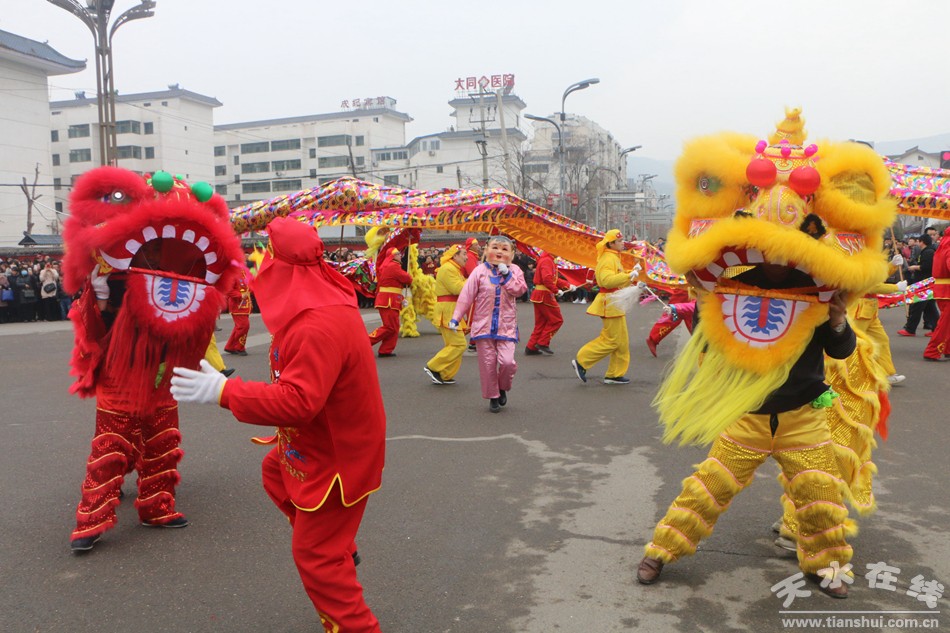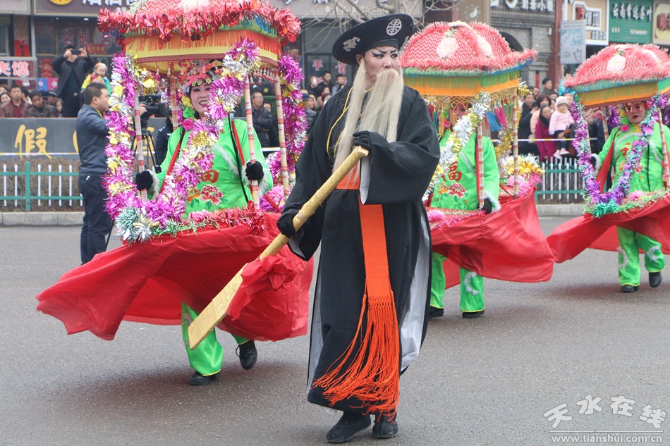 天水是中國歷史文化名城,歷史悠久,民風純樸,民間非物質(zhì)文化遺產(chǎn)資源豐富,獨具地方文化色彩的春節(jié)文化活動節(jié)目更是形式多樣、精彩豐呈。近來年,秦州區(qū)在做好經(jīng)濟強區(qū)建設(shè)的同時,更加注重豐富人民群眾的精神文化生活,廣泛開展了群眾性文體娛樂活動,特別是春節(jié)文化節(jié)日活動更加豐富多彩。今年,區(qū)委、區(qū)政府組織相關(guān)文化部門對民間傳統(tǒng)藝術(shù)文化活動進行發(fā)掘整理,組織群眾喜聞樂見的節(jié)目,由街道和鎮(zhèn)為演出組織單位,舞龍、舞獅、跑旱船、秧歌舞蹈、嗩吶夾板等民間節(jié)目在春節(jié)期間集中匯演。