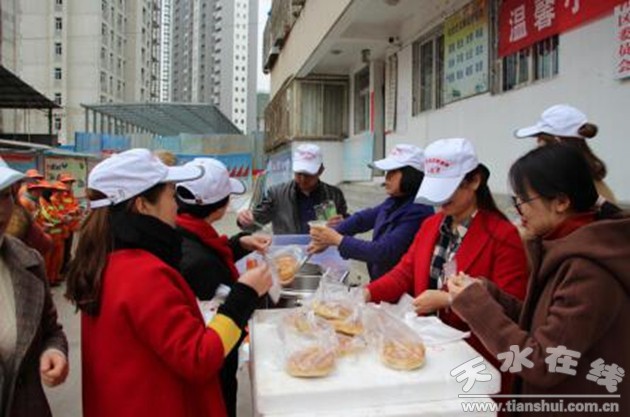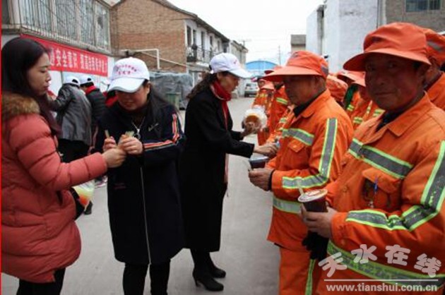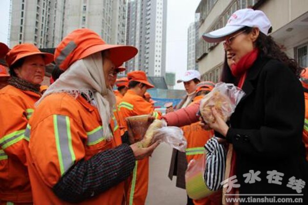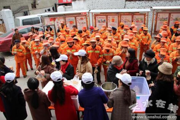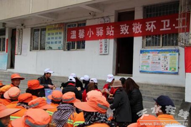 關(guān)愛(ài)環(huán)衛(wèi)工·溫馨小驛站,瀛池社區(qū)在行動(dòng),陽(yáng)春三月,乍暖還寒,為了讓黨的十九大精神真正在基層落地生根,2018年3月5日上午,在學(xué)雷鋒日和國(guó)際“三八”婦女節(jié)來(lái)臨之際,為了將雷鋒精神發(fā)揚(yáng)光大,體現(xiàn)社區(qū)對(duì)女性同志的關(guān)愛(ài),天水郡街道瀛池社區(qū)開(kāi)展“溫馨小驛站 致敬環(huán)衛(wèi)工”送愛(ài)心活動(dòng),這是瀛池社區(qū)愛(ài)心早餐啟動(dòng)的第二個(gè)年頭。愛(ài)心早餐,為愛(ài)早起,瀛池社區(qū)全體社區(qū)工作人員向天水郡片區(qū)環(huán)衛(wèi)工人致敬,貢獻(xiàn)一片愛(ài)心!