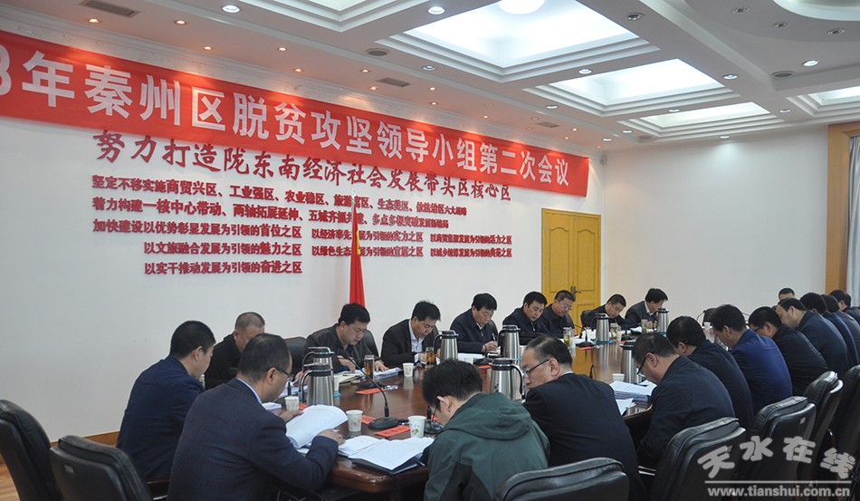 秦州區(qū)外宣辦3月13日訊(趙鋒)12日,秦州區(qū)召開2018年脫貧攻堅領導小組第二次會議。市委常委、秦州區(qū)委書記雷鳴出席會議并強調(diào),在農(nóng)業(yè)農(nóng)村和脫貧攻堅工作中肯定經(jīng)驗,在三年脫貧攻堅提升工程中尋找短板,在如期完成脫貧攻堅任務中健全考核、問責、獎懲機制,確保全區(qū)脫貧攻堅工作扎實推進、按期完成。區(qū)委副書記、區(qū)長劉文璽主持會議