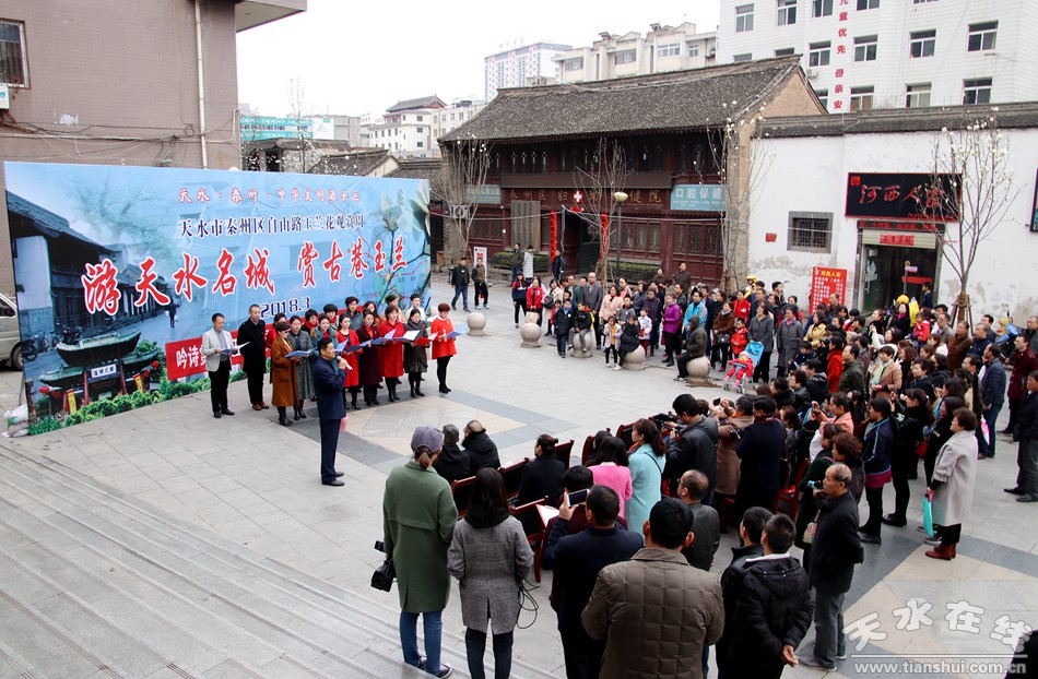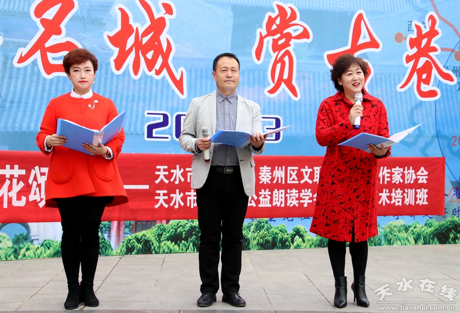 朗誦活動從下午4點(diǎn)開始,直至晚6時結(jié)束。共有30多位朗誦者朗誦了20余篇詩文。朗誦詩文中既有本地作者所寫的《秦州古巷,玉蘭花開》、《窗前的玉蘭花開了》、《秦州詞》等詩文,也有《詩經(jīng)》之《蒹葭》、杜甫的《春夜喜雨》、孟浩然的《春曉》等古詩,還有近現(xiàn)代名家名作《你是人間四月天》(林徽因)、《有一個奇跡叫中國》(蔣巍)、《秋天懷念》(史鐵生)等。朗誦之時,人潮涌動,掌聲陣陣。