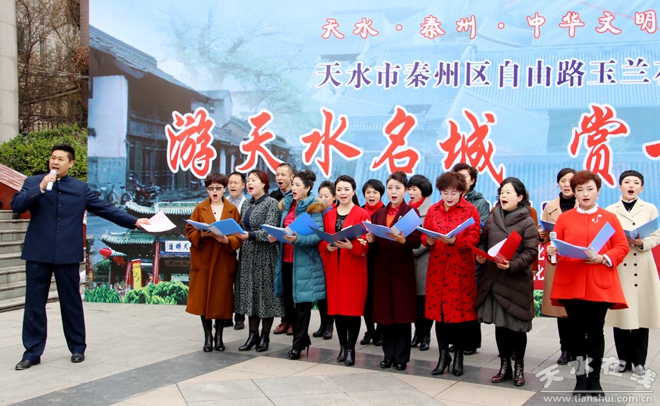 3月17日下午,剛剛下過雨的秦州區(qū)自由路,春寒料峭,乍暖還寒。4點(diǎn)鐘,在秦州劇院門前,一場吟頌玉蘭的朗誦會,讓寒氣頓消。精彩的吟頌之聲,或讓行人駐足聆聽,或讓游人流連忘返!優(yōu)美的詩文,動聽的聲音,或高昂或低沉,或抒情或贊嘆,或緬懷或暢想,讓整條古巷,古韻之中多了些詩的味道;讓朵朵天使般的玉蘭,幽雅之中多了些詩的香氣!